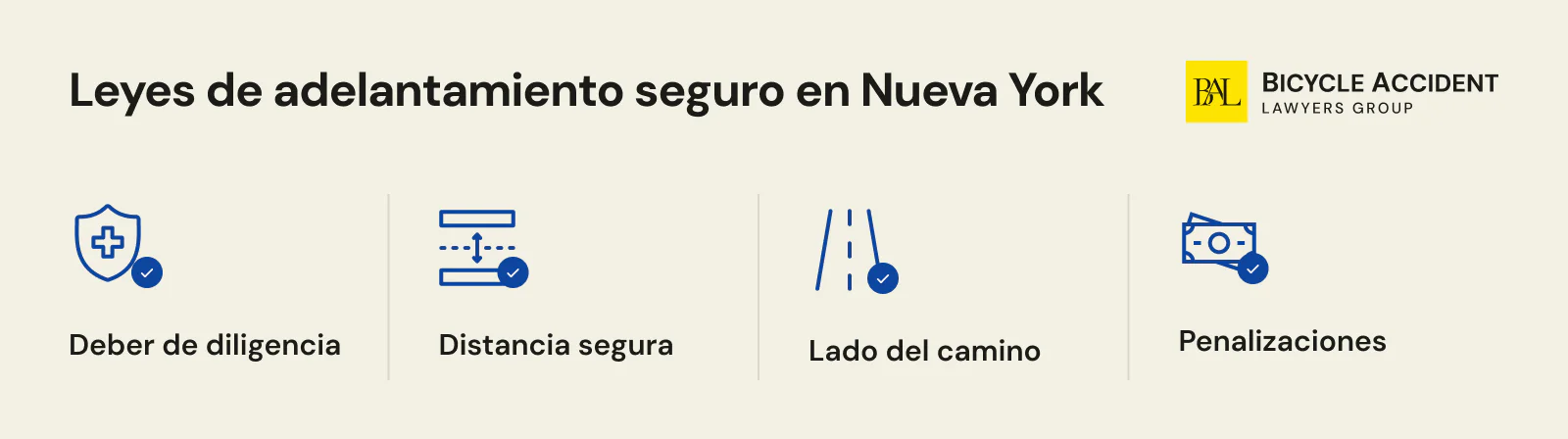Los accidentes suelen involucrar a más de una persona. Por eso, todos los usuarios de la vía, desde conductores hasta ciclistas, deben conocer y respetar las leyes sobre hacer adelantamientos seguros. En la ciudad de Nueva York, aplican las siguientes normas: